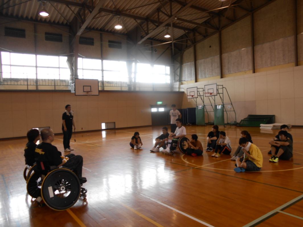 昨日の午後からは宇奈月町の体育館で、あおの丘のみなさんと一緒に車いすツインバスケの体験会をやってきました。自宅は13:30スタートだったので、11:30に出発し高速ぶっとばし~の。雨は降ってなかったです。