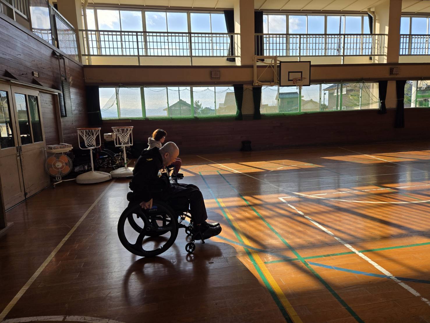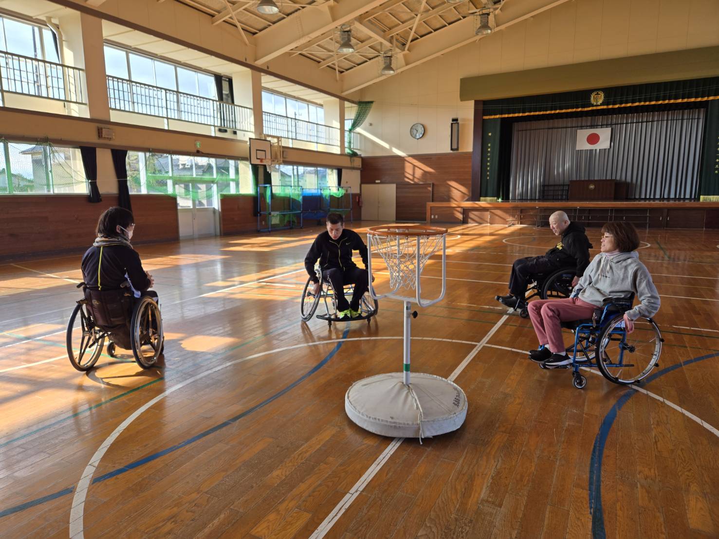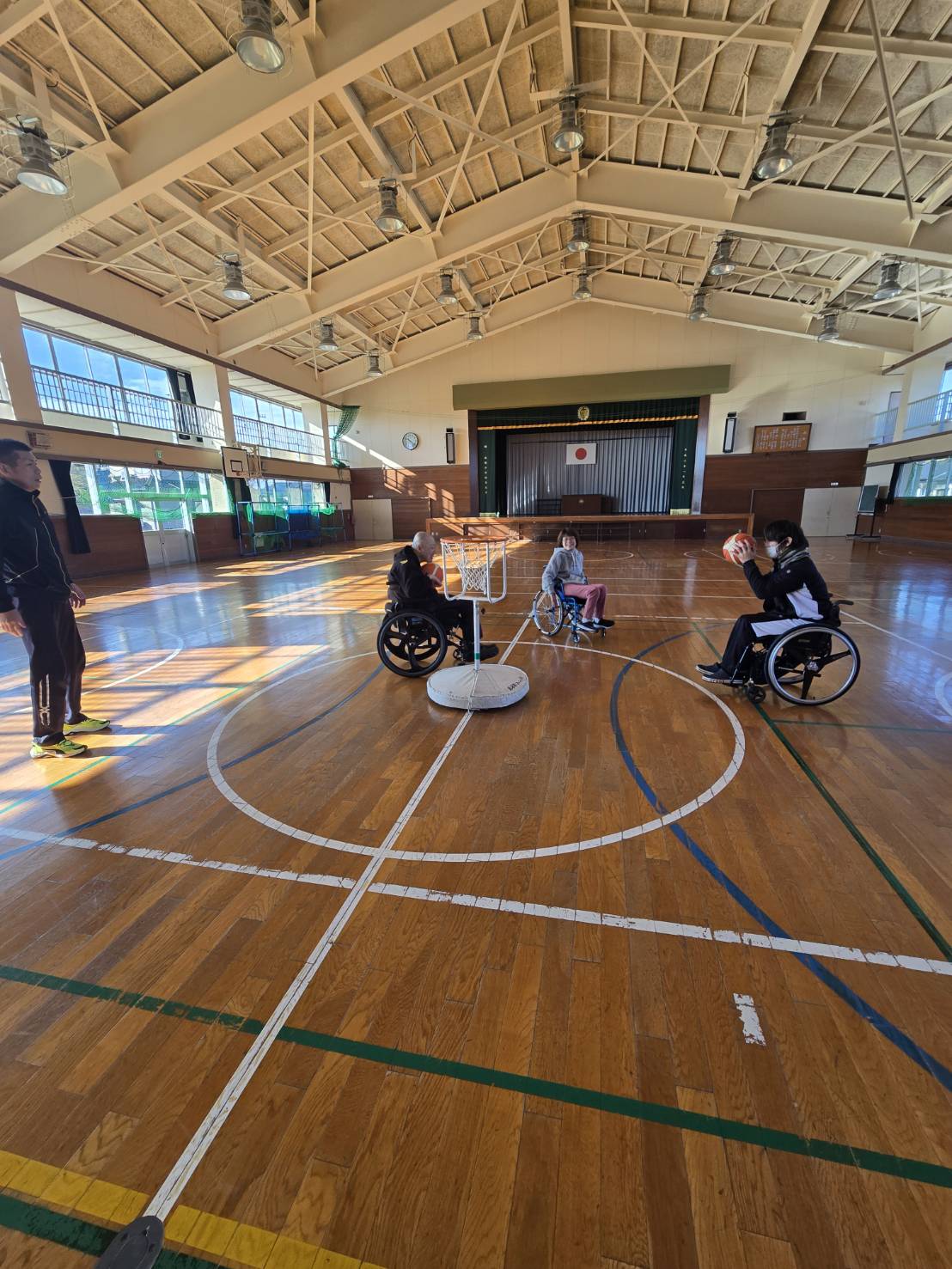 寒くなりましたねー。今日の午前中は石堤公民館体育館で、車いすツインバスケの練習をやってきました。