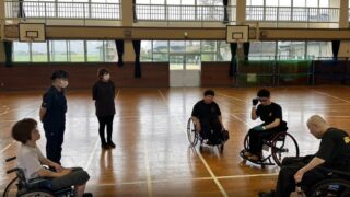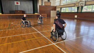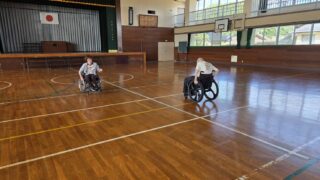 だいぶ涼しくなりましたねー。今日の午前中は石堤公民館体育館で、車いすツインバスケの練習がありました。